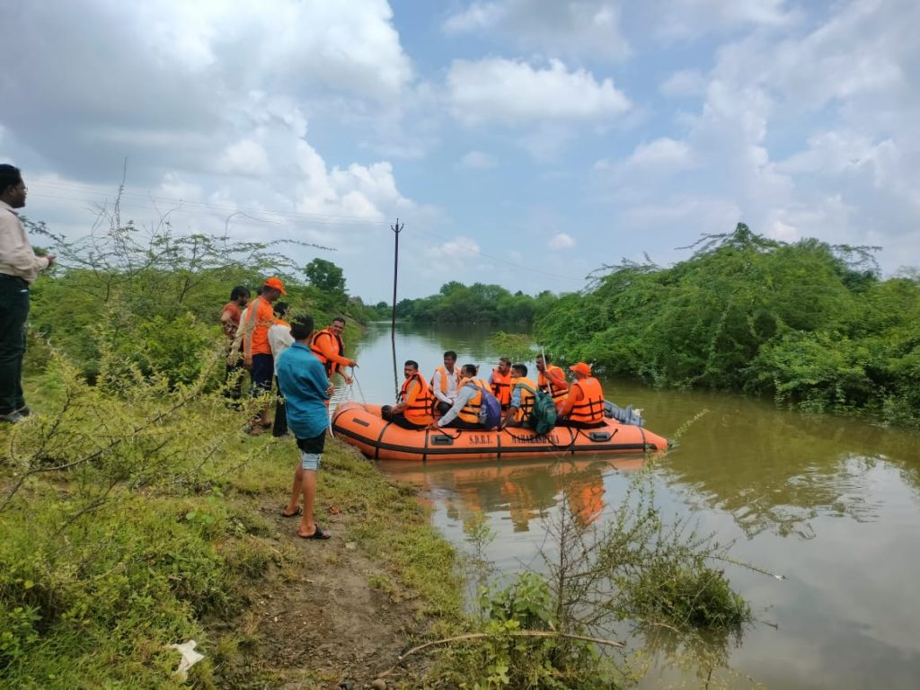 राहेगावात वैद्यकीय पथक पोहोचविण्यासाठी एसडीआरएफचे जवान सज्ज होताना व मदतीसाठी पाठवले जाताना.