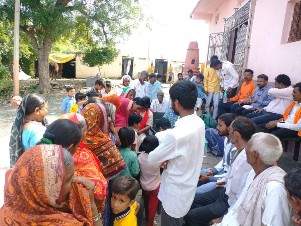 जिल्हा आरोग्य अधिकारी व आशा कार्यकर्त्या राहेगाव वैद्यकीय शिबिरात नागरिकांना जीवनावश्यक औषधे वितरीत करताना.